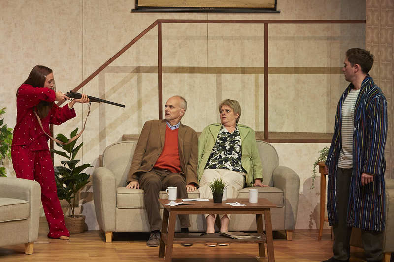 Lottogewinn mit Folgen: Das Boulevardtheater Bremen zeigt die schwarzhumorige Komödie "Die lieben Eltern". Ein Stück über Familiendynamik, Gier und brökelnde Motalvorstellungen.
